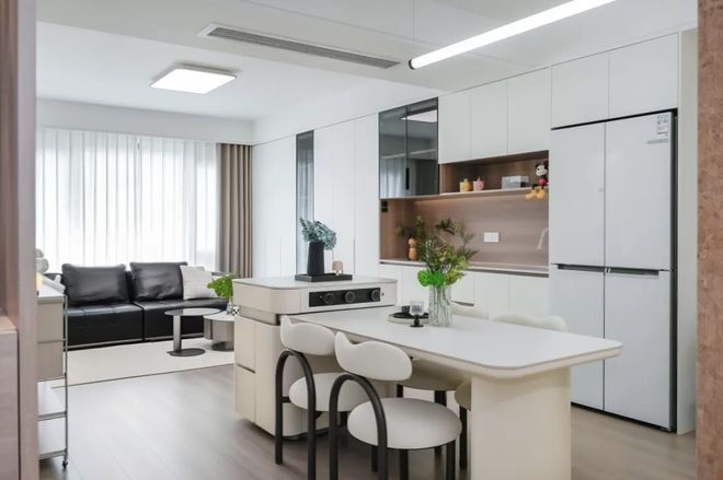 首先,厨房的面积被适度缩小,以增加餐厅的使用空间。原本封闭的厨房经过设计师的巧手改造成半开放式,既增强了空间的通透性,又增加了光线的流动。同时,卫生间的干湿分离设计,不仅提升了使用的便利性,也使得客厅与厨房的布局更加合理。