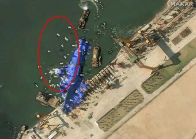 朝鲜的第二艘“崔贤”级新型驱逐舰仍然侧翻在清津造船厂的港湾里,几天来朝鲜官方对修复进展无声无息。有美国专家(美国智库“海军分析中心”的德科尔·埃弗莱斯,下图为其推特截图)根据商业卫星图片出现的一些类似气球状的物体,称朝鲜似乎是从动漫片《飞屋环游记》里获得灵感,用气球来帮助侧翻的5000吨级大舰恢复平衡。这玩笑开得有点儿大;有著名军事自媒体称,这些气球可能是用来悬挂夜间照明灯的,我觉得这个看法比较靠谱儿。
