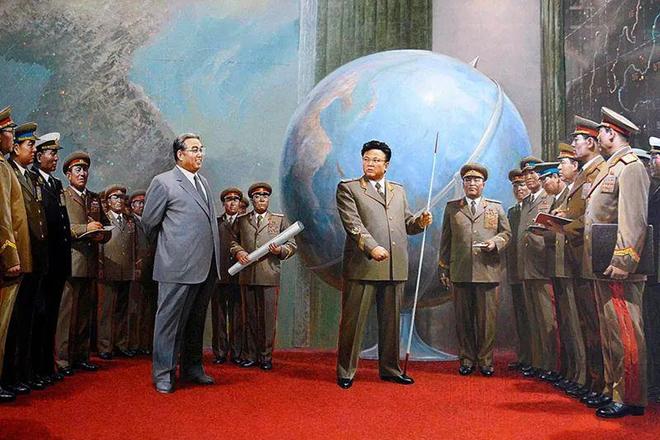 上图会议室里有个大型地球仪,这不禁让人想起这幅朝鲜油画。果然是艺术源于生活、大于生活啊!